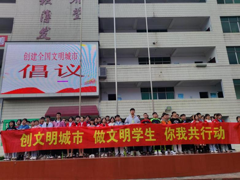 为落实市委、市教育局“创文”工作重要部署,为乐山市“创文”做贡献,争做文明市民,乐山一职中利用升旗仪式开展了创建全国文明城市的倡议活动。我校校长何晓明向全校师生提出了倡议: