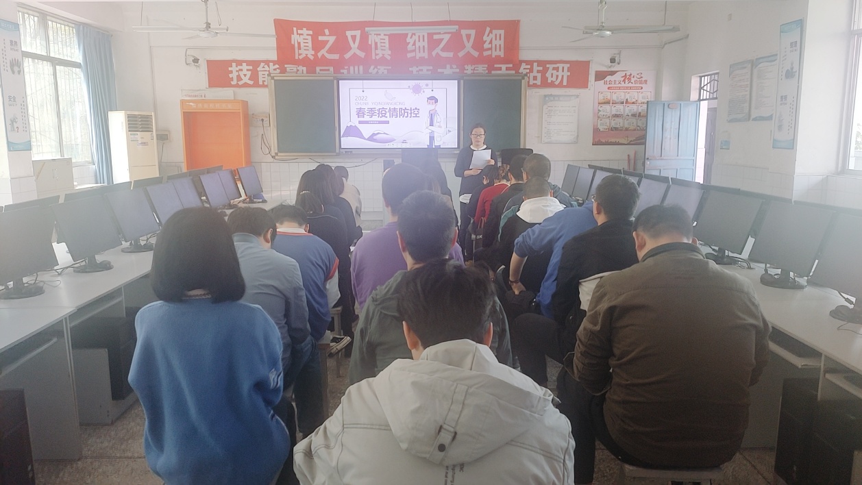 近期我国疫情多发频发,防控形势复杂严峻,2022年3月10日中午12:40,我校计算机专业部在学校的全面部署下,迅速组织计算机专业全体教师在行知楼八机房进行了疫情防控知识的宣传和学习。