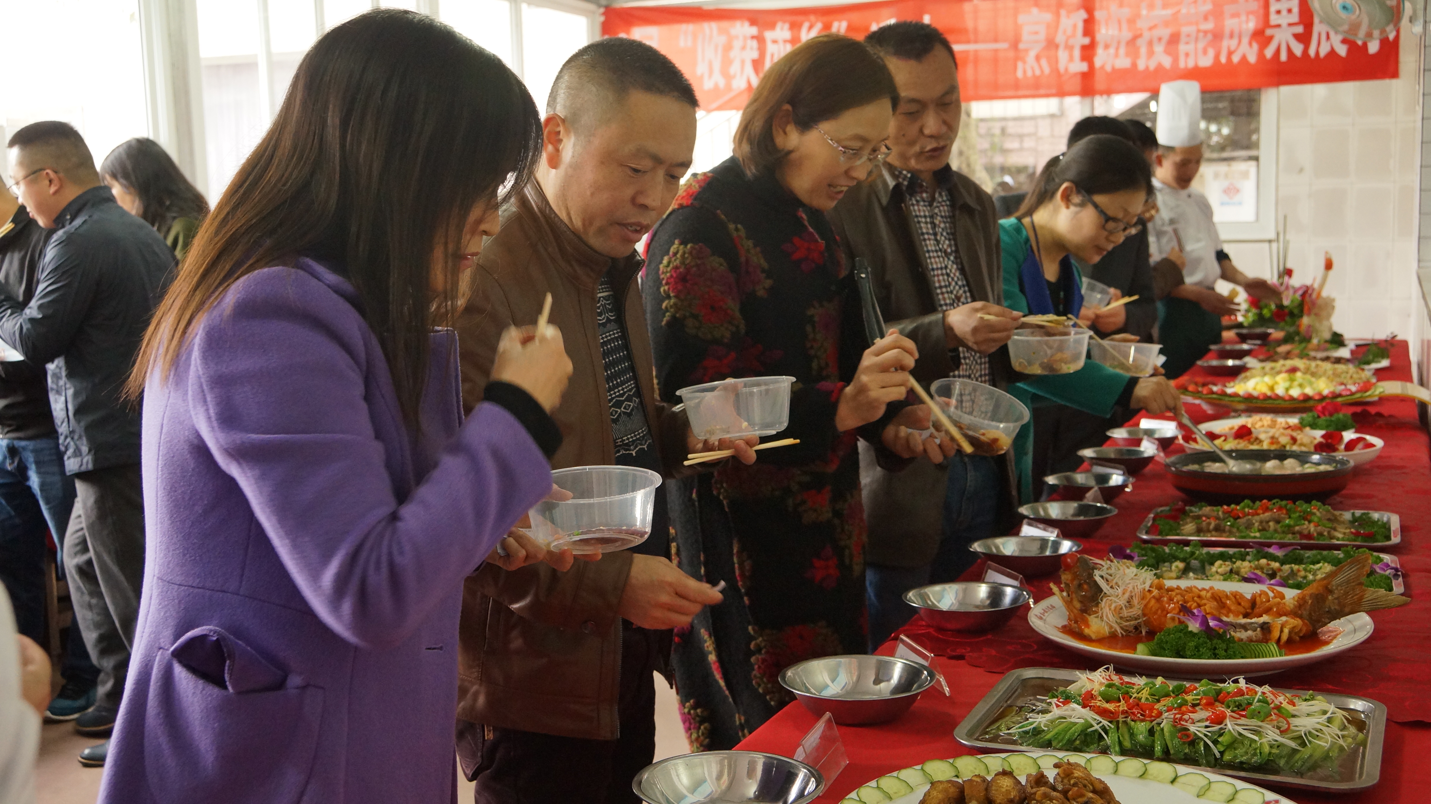 为了这次活动,毕业班同学在老师组织下做了精心准备。活动前期,各位同学根据烹饪特长被分成小组,分别制作面点、小吃、雕刻、调酒、凉菜、热菜等菜品。2017年3月30日活动当天,校领导及专业部老师品尝了他们制作的美食,并认真地为菜品投上了自己的点赞票,分别给每个菜品点评,虽不专业但诚恳。